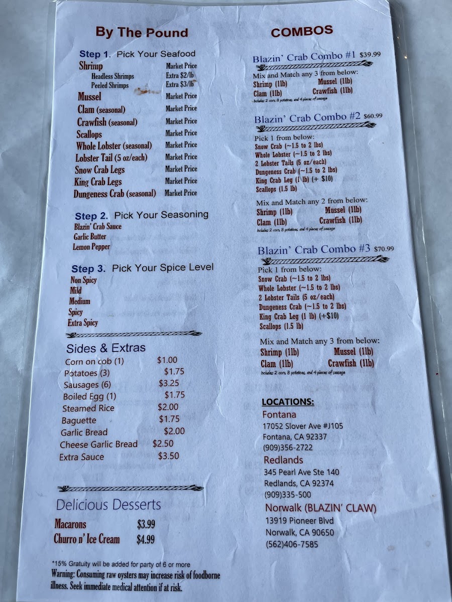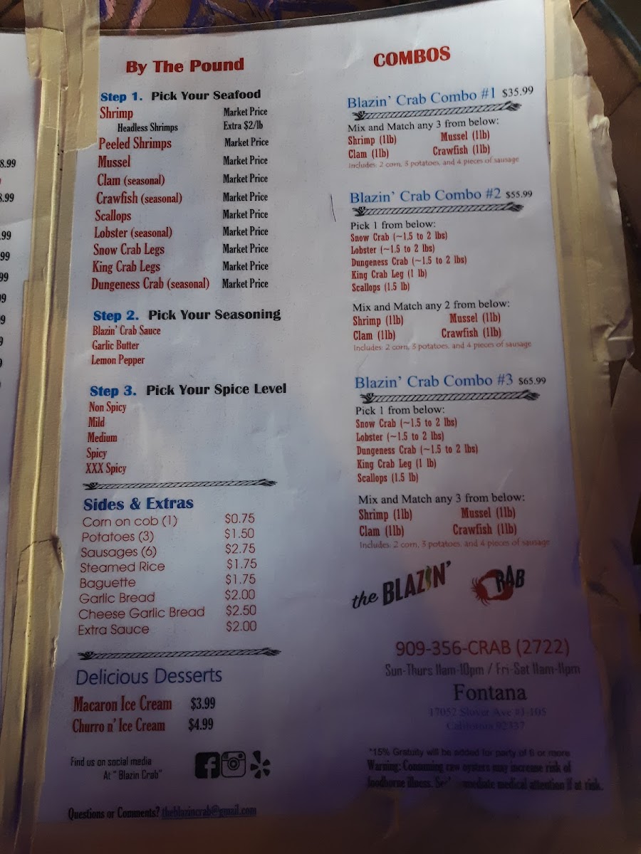 Welcome to Blazin' Crab Fontana, a seafood haven nestled in Fontana, CA. The menu is a delightful journey through Cajun-inspired dishes designed to awaken your taste buds. Start your meal with their renowned Cajun Garlic Fries or Popcorn Shrimp, both priced under $10, ensuring you savor every bite without breaking the bank.